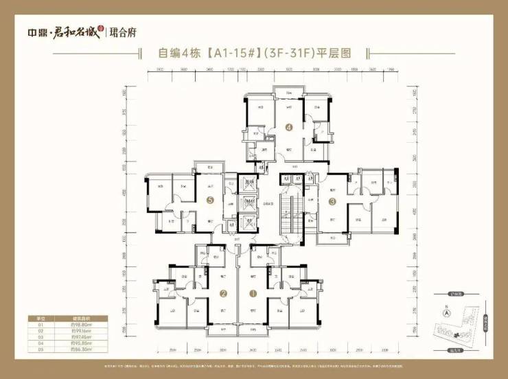 01 /02户型99方,03户型南向97方,04户型96方,05 户型87方