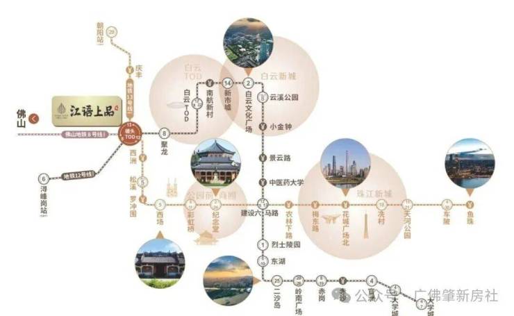 广州12号线、13号线、佛山8号线交汇,贯穿广州东西人文经济大动脉,广州五大区域核心版块无缝直达。