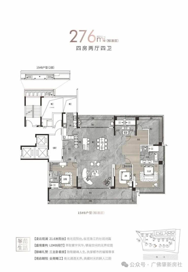 【户型面积】:约125-142㎡四房两厅两卫/214-313㎡大平层