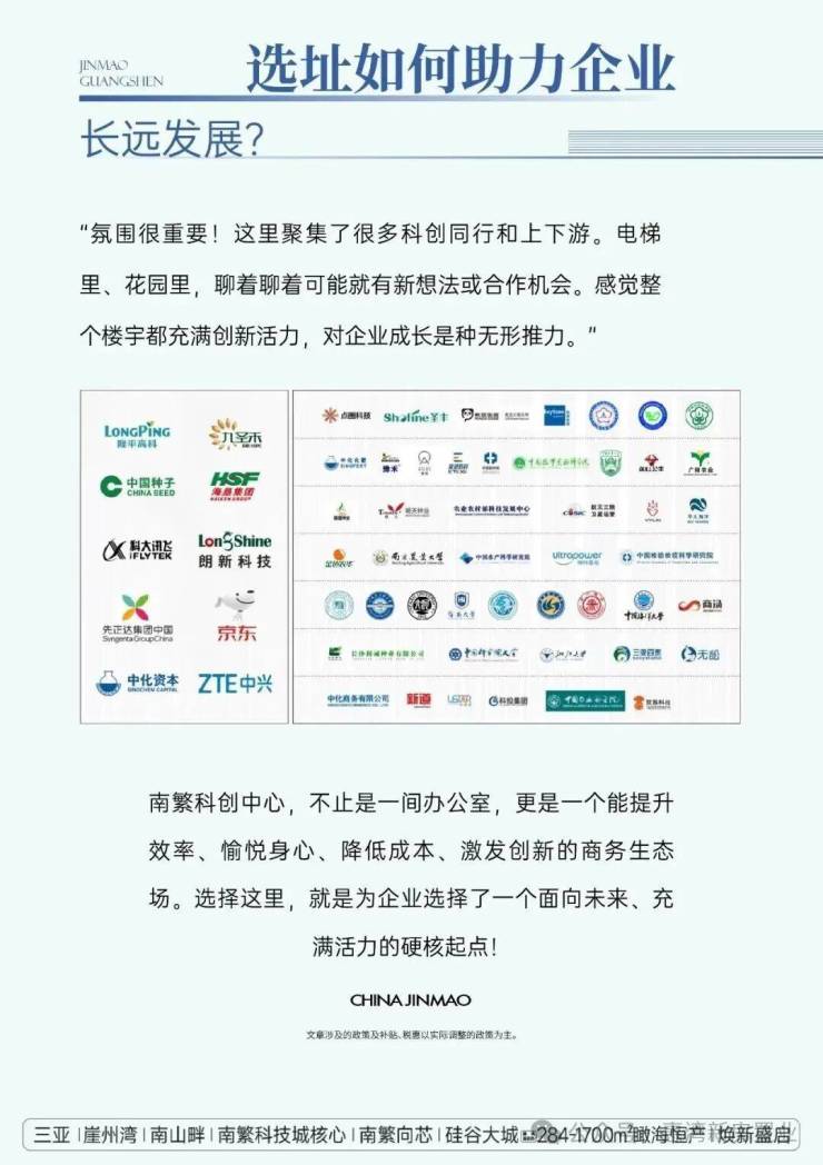 ⭐金茂南繁科创中心官方电话:400-870-6038(官方统一认证热线)