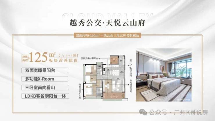 4、125方一线云山景观,白云山豪宅圈唯一不超过144方豪宅面积线无遮挡云山景观产品;