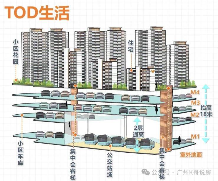 【公交】打造首个全新的公交TOD模式,项目整体抬高18米,楼下架空层为阳光观景车库和阳光公交站场,下楼即上车,到站即归家,解决回家最后一公里问题,在车库也可以看一线云山景;