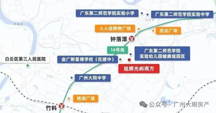 项目位于地铁14号线钟落潭站旁,距离大概1000米,5站到嘉禾望岗,换乘2、3号线可直通白云新城和畅达广州全城;