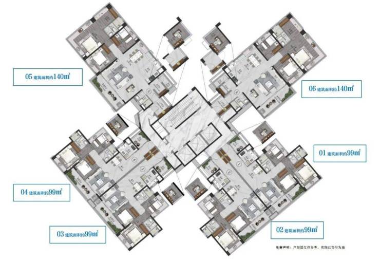 140㎡4房2卫,LDK一体化联厅,南北通透,客厅近6米超大进深,阔绰主卧套房,270°景观飘窗。