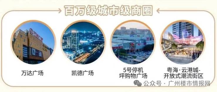 周边,白云凯德云尚广场、五号停机坪等醇熟商圈提供了丰富的购物、餐饮和娱乐选择,而粤海·云港城自身规划的白云粤海天地潮流街区也即将呈现,为层峯人物打造了一个集生活、工作与休闲于一体的完整生态圈。