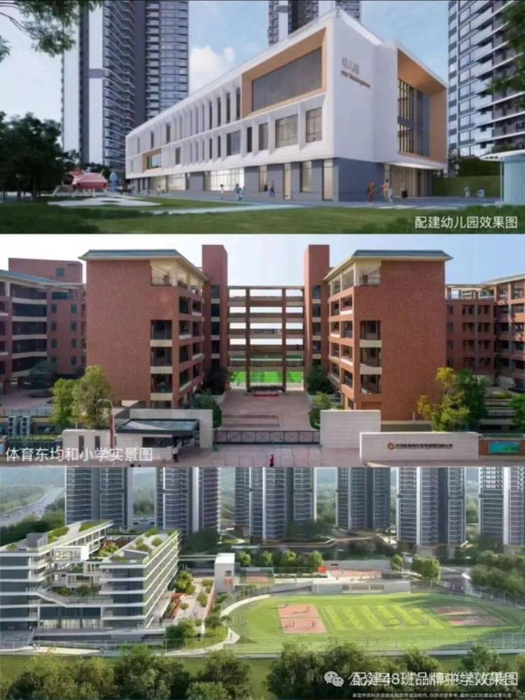初中:配建48班初中,2026年9月引进天河外国语教育集团办学(广州TOP8名校),管理团队由总校派驻。