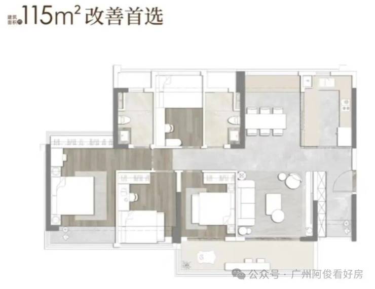 115㎡/130㎡四房:南北对流,灵活空间适应家庭成长。