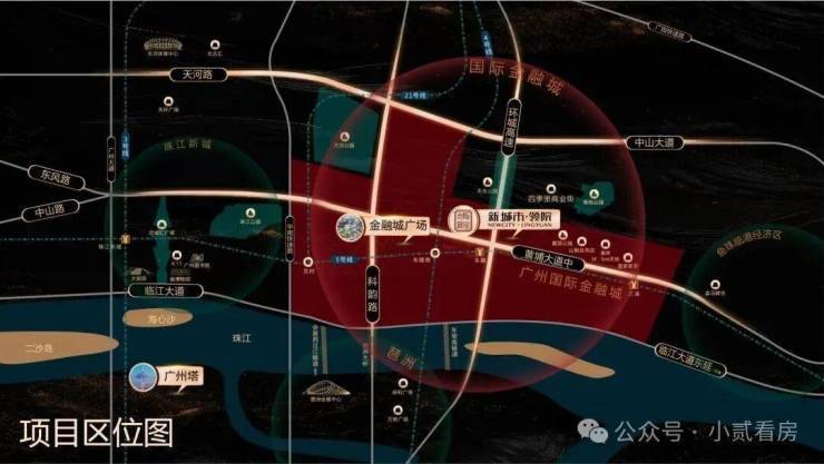 新城市领院位于黄埔大道的北侧,靠近鱼珠,南向望江,和金融城东区直线距离约300米左右,跟兰亭盛荟只有一路之隔。
