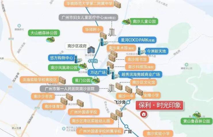 保利时光印象的核心价值与配套,体现了对“世界级时光艺术生活”核心需求的深度洞察。项目以“国际湾区地标、艺术生活平台”为理念,规划有国际艺术商业中心、时光会客厅、超星级艺术服务公寓、时光私邸、云端艺术会所、国际康养中心、时光艺术公园、中央时光花园,营造出典雅、浪漫、国际化的时光峰层生活氛围。其核心优势在于对 “粤港澳大湾区国际艺术都会、南沙国家级新区核心、广州城市副中心封面、广深港澳科创走廊支点、广州地铁18号线、南沙客运港、深中通道、南沙文化艺术中心”八大核心战略与顶级资源的高效享有。项目不仅能零距离享有南沙已高度成熟的国际学校、三甲医院、世界级商业、文化场馆等全球顶级配套,更能以前瞻性的占位,独享 “国家级新区文化政策红利、全球艺术资源集聚、粤港澳深度合作机遇、国际时光美学资源导入、轨道与跨海通道立体交通网络” 带来的巨大文化、文旅、资本与交通红利。交通方面,通过广州地铁18号线、深中通道、南沙大桥、广澳高速等城市动脉可8分钟直达横沥站、12分钟接驳南沙客运港、20分钟联动深圳宝安国际机场,构建真正的“轨道上的国际湾区艺术生活圈”。