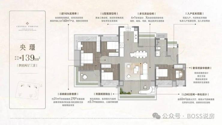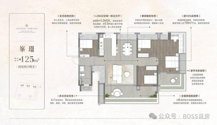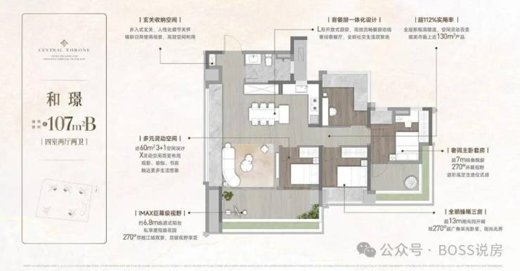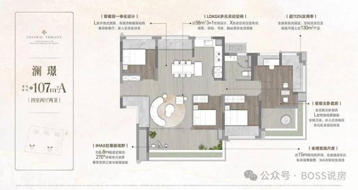 央璟颂是一个超新规项目,项目使用率最高超130%,0飘窗设计,赠送面积超高,面积段涵盖建面约95-139㎡的三至四房。