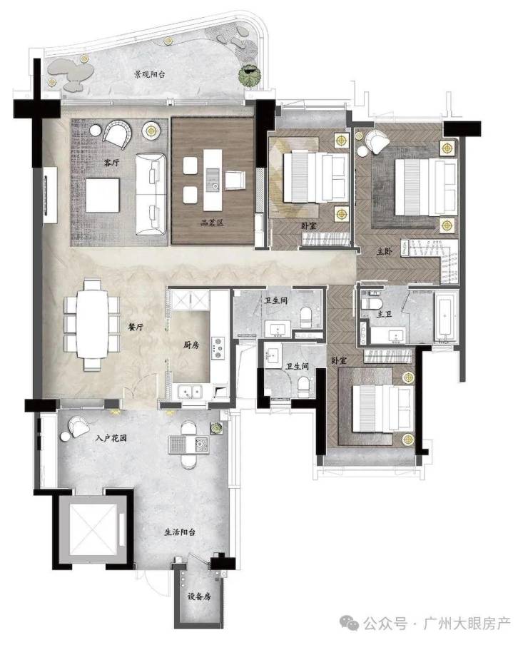 ④超低容积率仅0.99%,除自家独立花园外还打造5个大型下沉式花园并有丰富的功能(如儿童乐园、瑜伽健身冥想、开放剧场等),可满足不同年龄段业主需求。