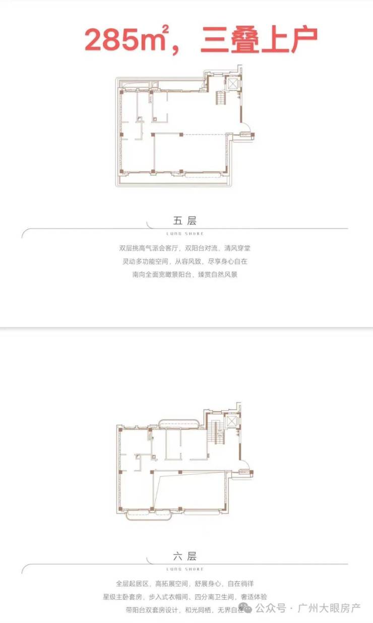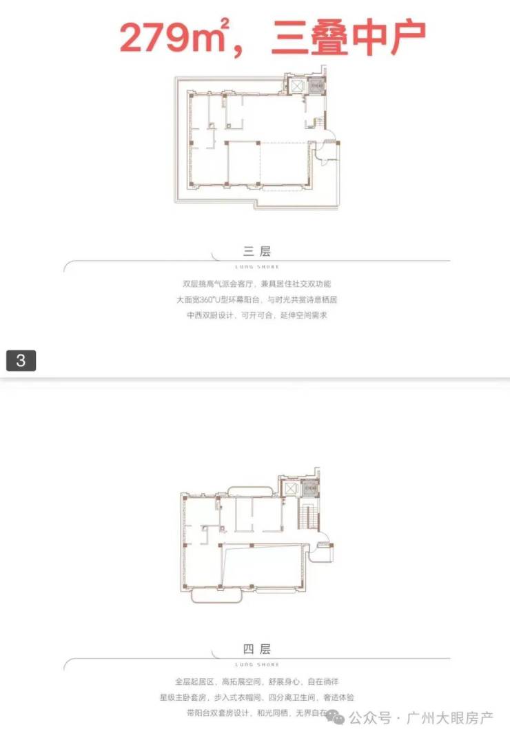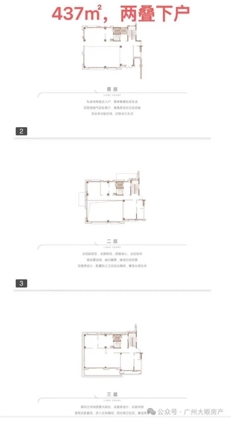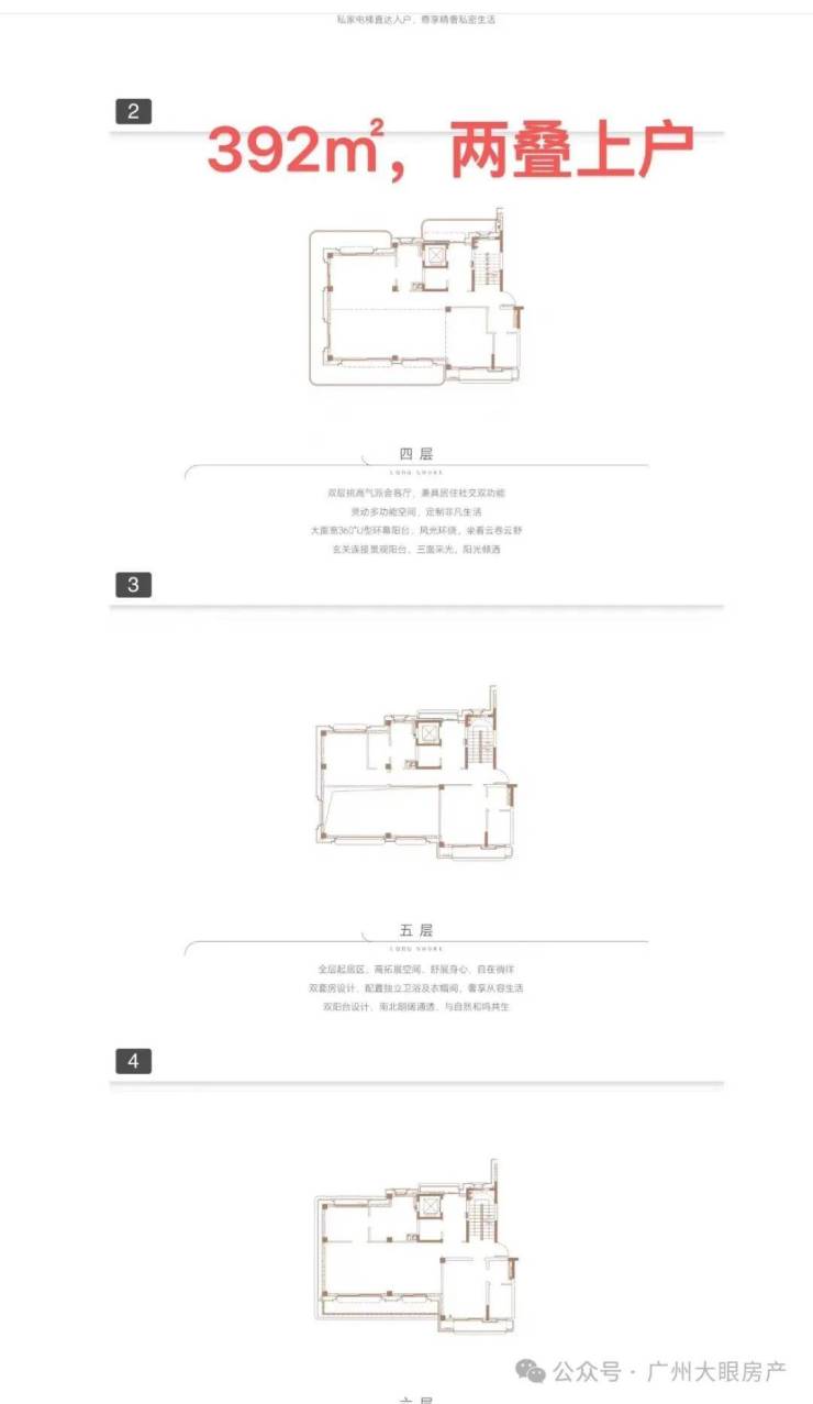 ●产品户型:两叠(上叠392㎡、下叠437㎡),三叠(上叠 285㎡、中叠279㎡、下叠305㎡)