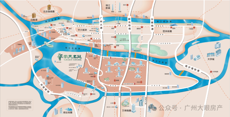 ②项目位于广州快速发展的黄金江岸线——珠江后航道高端豪宅居住带上;
