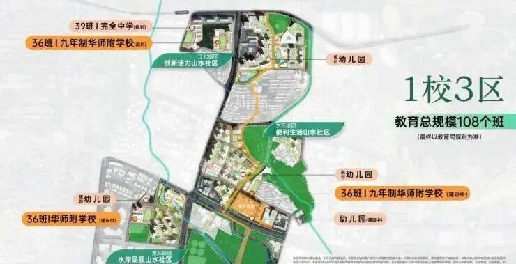 规划打造 8 所学校(4 幼儿园+1 小学+2 所九年制+1 所完全中学),华师附已签约,目送式全龄教育;