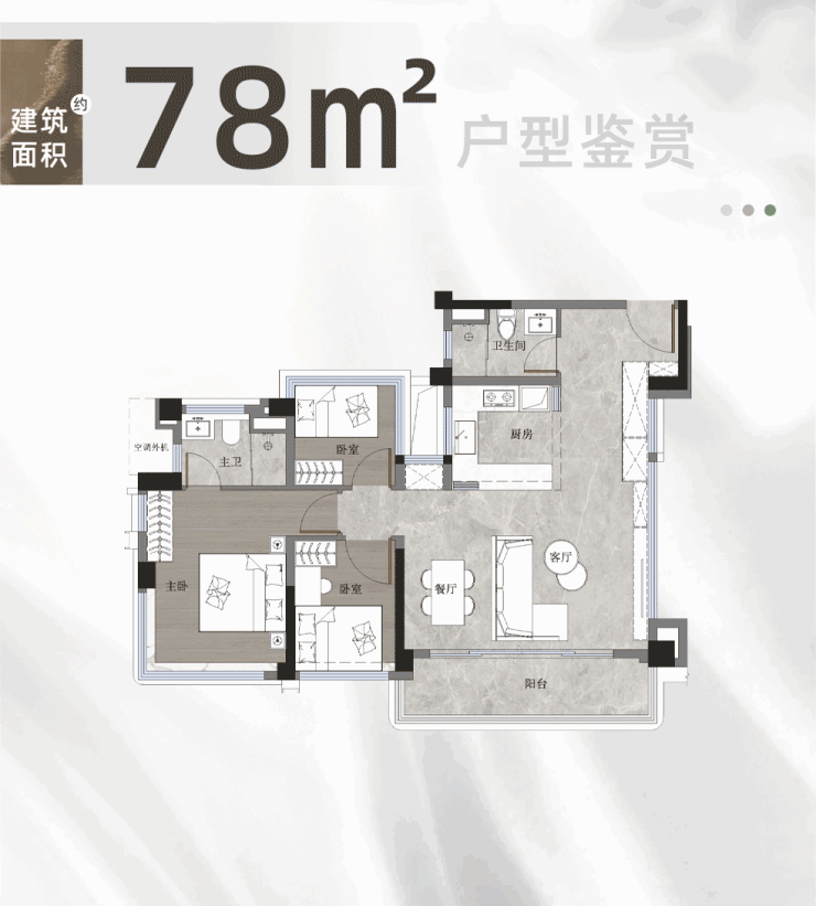 【建面约 78 ㎡三房两卫】建面使用率高达 115%-121%(套内使用率 144-152%);使用面积约 90-95 ㎡