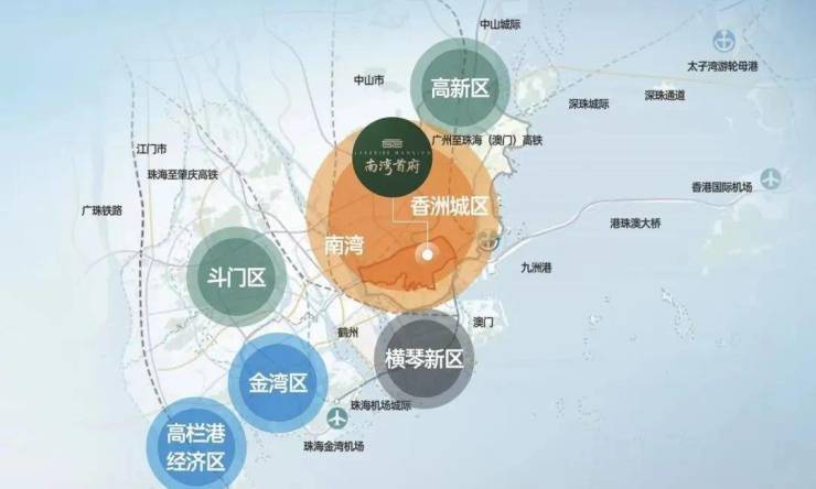 ▫️南湾位居珠海地理几何中心,东面一桥之隔即为香洲老城区,南面与横琴粤澳深度合作区、十字门中央商务区一山之隔;西面规划鹤州新中心;