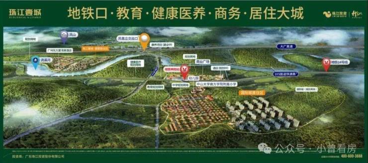 集文、旅、康、养、商、教、居于体,打造商务城、健康医疗城、教育城和居住城,强大的功能组团全广州都少有。