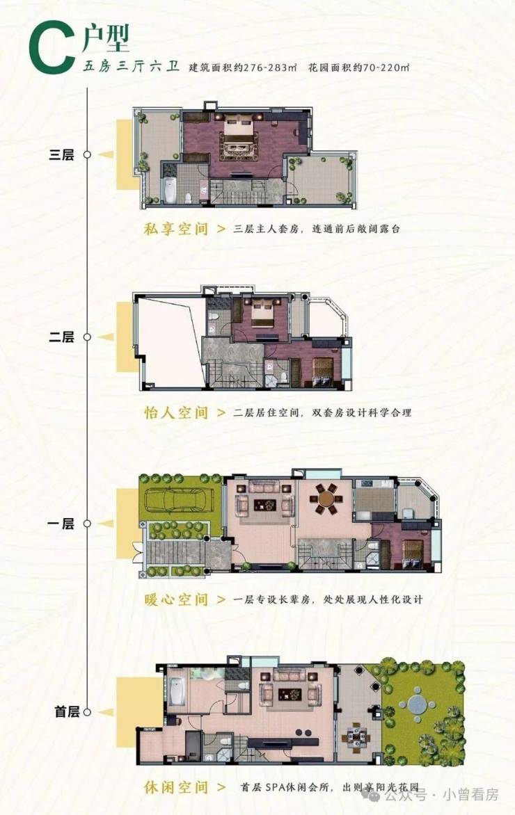 268-283㎡宜居别墅设计,全现楼交付,即买即享有。自有花园,给自己一方栽花品茗的天地院落。