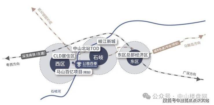 【城市枢纽】出门即彩虹大道,畅行主城圈;城轨2号线(规划)西起小榄,东至马鞍岛,途径西区、石岐、东区等;广珠西线高速从项目出发可迅速抵达中山西区与东升高速入口。