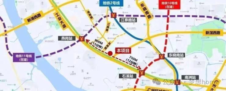 中建天钰坐拥双地铁,位于广佛线燕岗和石溪两个地铁站之间,步行距离分别是750米和900米,目前开通的是广佛线,燕岗站同时是大环线11号线的站点,去海珠琶洲、天河、越秀等核心板块都很方便;