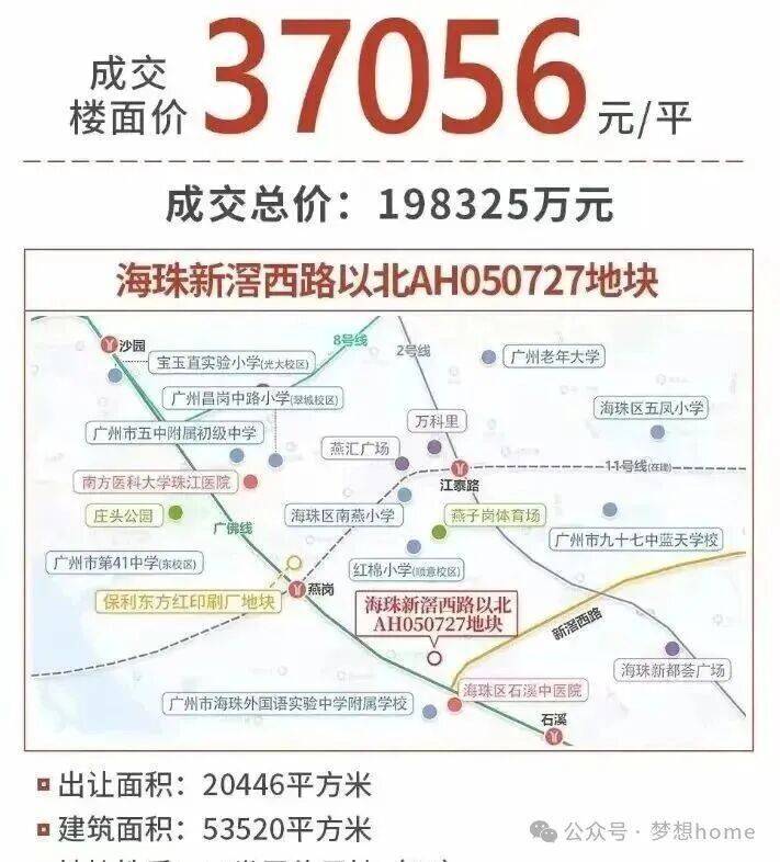 海珠新滘西路以北地块,2023年12月被中建信和(中建五局)以19.8亿总价拿下,折合楼面价约3.7万/平,现在定名为 “ 中建天钰 ”。