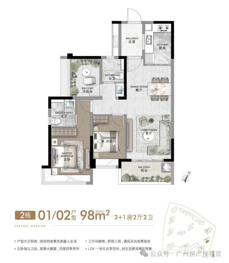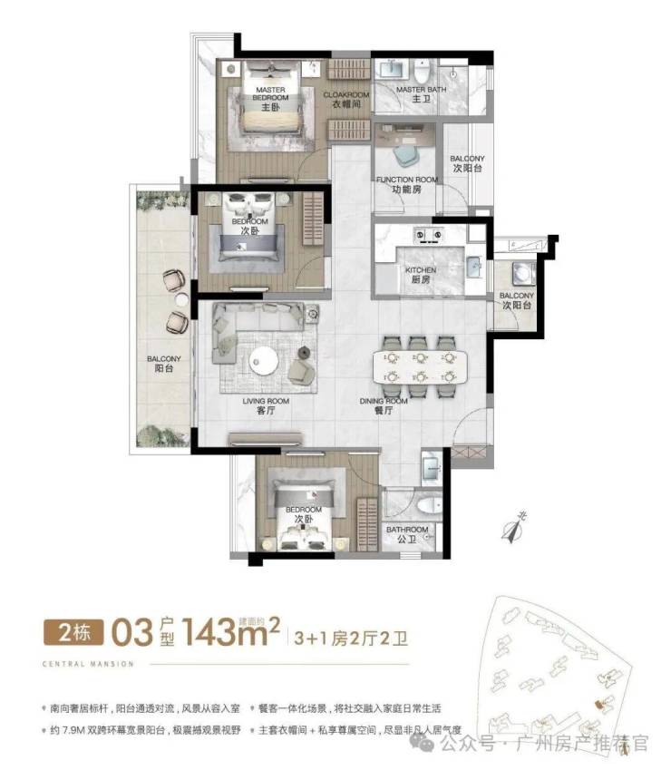 建筑面积约98-143㎡极致户型,都会精奢纯住品。