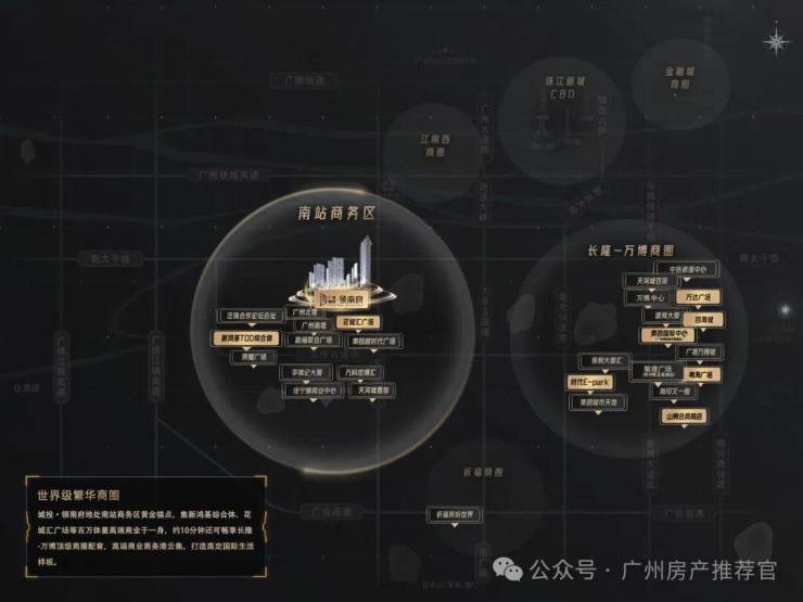 在未来,广州亲海商务的内涵还将延伸到广州南站地区。值得关注的是,位于番禺的这两大顶级商圈仅相距10公里。在地面,通过一条汉溪大道;在地下,通过轨道交通线,这两大顶级商圈可实现无缝对接,15分钟即可通达。