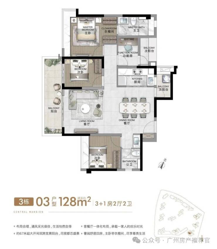 3、建面约127㎡3+1房2厅2卫(横厅)