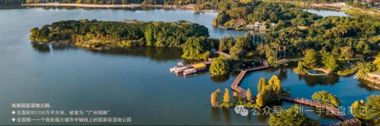 项目南瞰超万亩海珠国家湿地公园,全球超大城央湿地,约1100万㎡城央绿洲,距离项目约300米,可通过地下地铁连廊无风雨、无温差步行约5分钟可达。