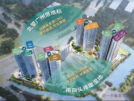 利用裙房,将项目整体抬升近20米,使住宅景观无遮挡,北望珠城/琶洲CBD、广州塔璀璨繁华,南瞰超万亩湿地自然生态风光然河涌,并沿途打造了开放式街角公园,与社区园林无边界衔接,景观优美。