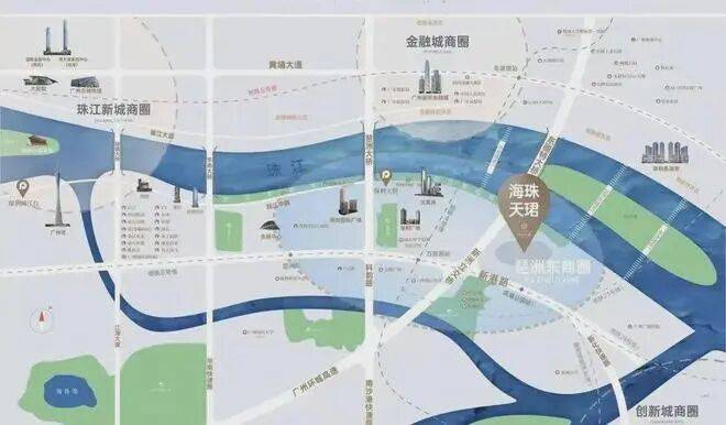 保利招商·海珠天珺位于珠江南岸的海珠区琶洲东板块,坐拥北望珠江、南临新港东路的优越地理位置。项目周边目前以低层、多层建筑为主,是珠江沿岸景观视线的重要组成部分。作为数字经济与总部经济创新合作区的重点项目,保利招商·海珠天珺不仅地理位置优越,更承载着区域发展的重要使命。