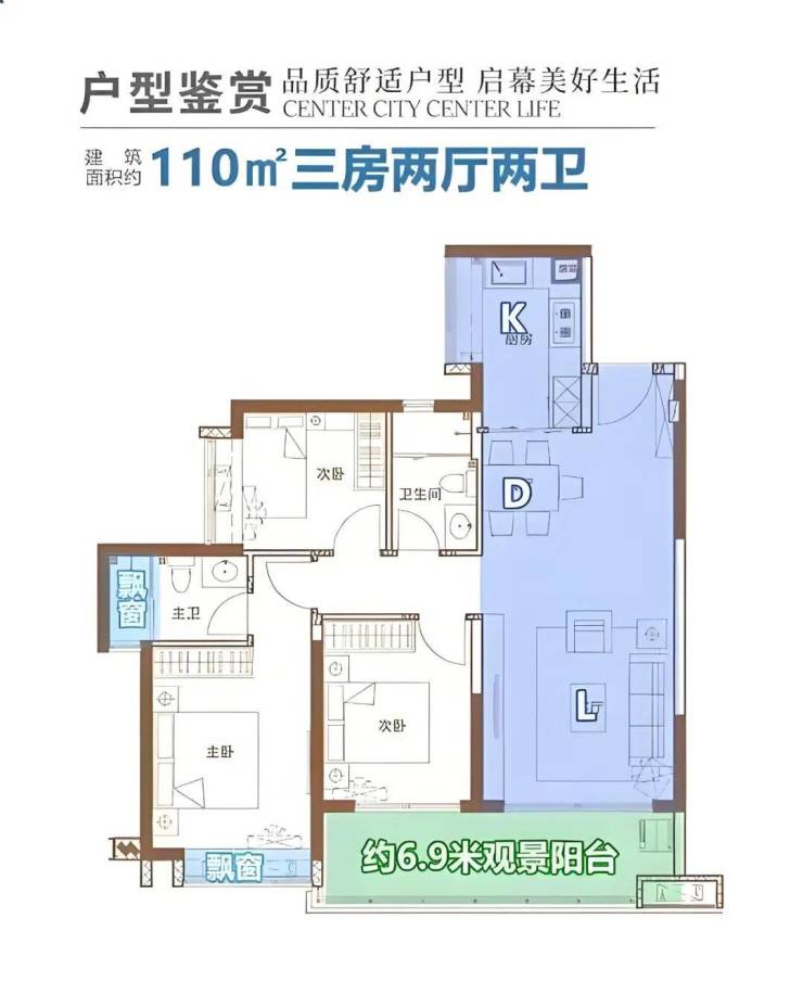 87-112㎡的三房适合新婚夫妻或三口之家,其中 110㎡的 3+1 户型,把阳台一部分改造成小书房,增加了实用空间。