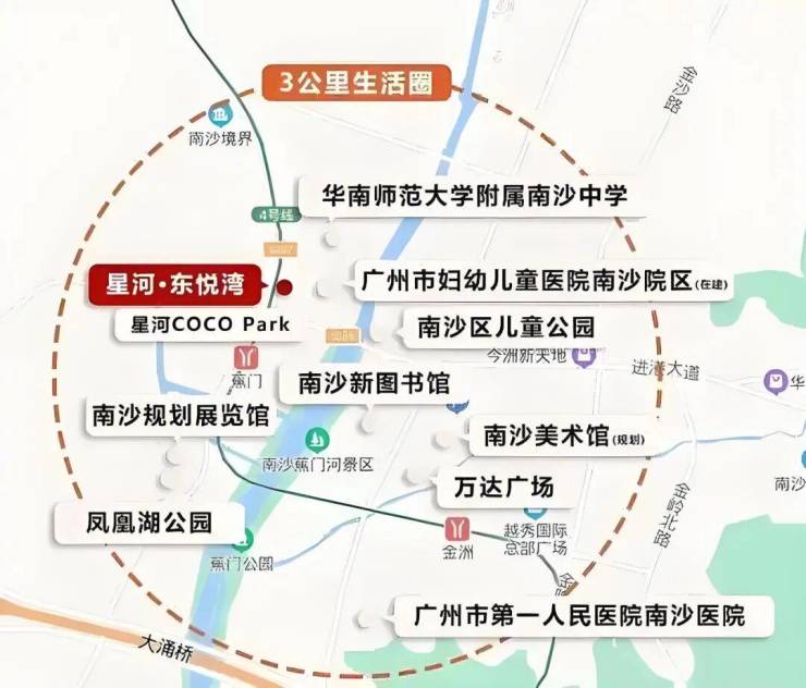 星河东悦湾坐落在南沙蕉门河中心区,这个位置属于南沙的成熟居住区