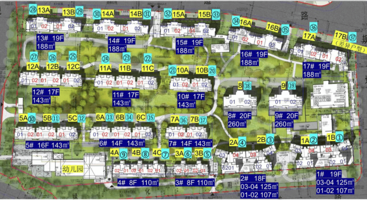 项目的住宅总量约1249套,现在已销售过半,目前项目还有少量的107/125平户型在售,主力在售后排的11、12、16栋148-188㎡的产品,具备中心园林景观优势。