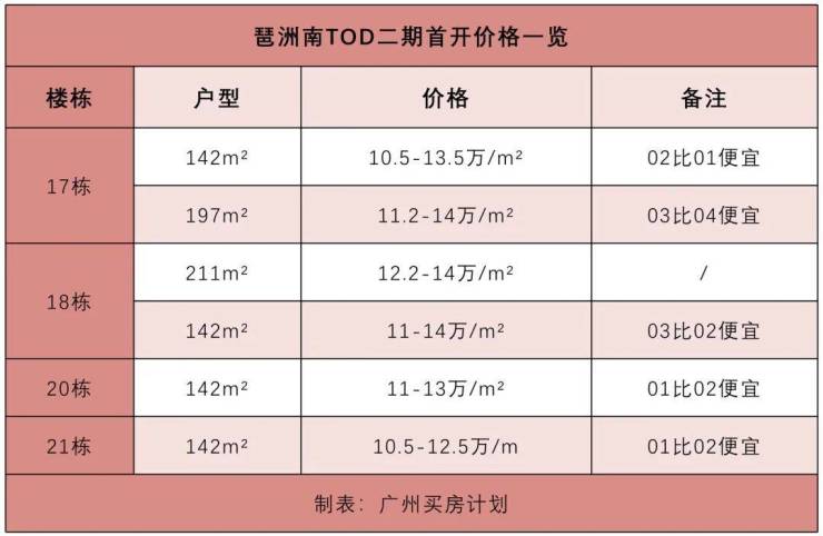 琶洲南TOD二期整体价格区间在10.5-14万/㎡,产品实用率比一期更高,所以性价比更高,其中首开的四栋有两栋142方是板楼设计,因为靠近华南快速高速路,价格相对便宜点,其余两栋则是塔楼设计。更多点击:琶洲南TOD二期140方货量告急
