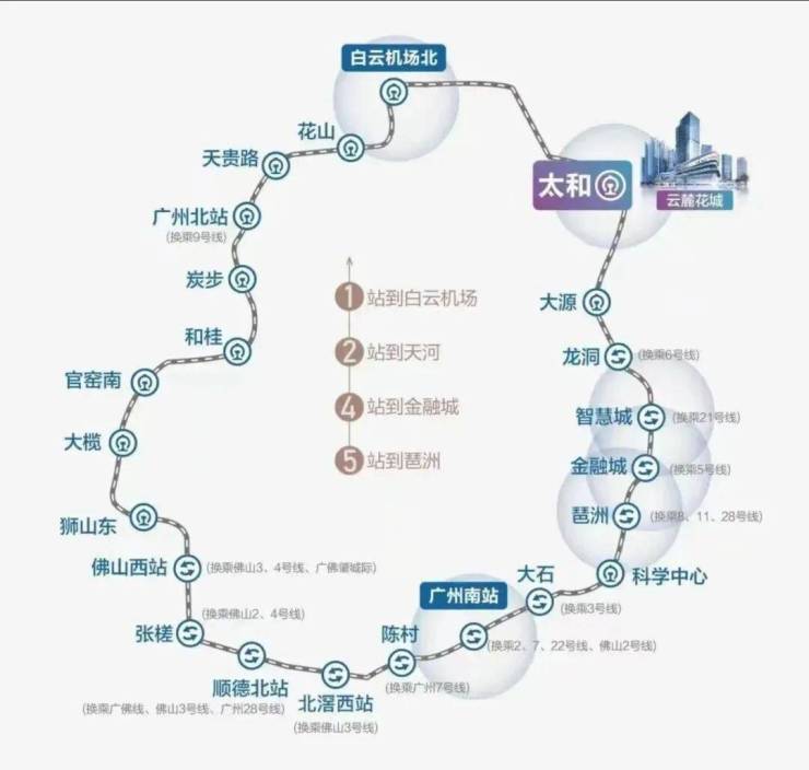 交通便捷:位于广佛环线太和站上盖,1站可达白云机场,2站直达天河,8站到达广州南站,一轨通达全城核心枢纽。周边还临近地铁14号线太和站,驾车可通过京港澳高速、广州绕城高速等快速融入1小时湾区生活圈。