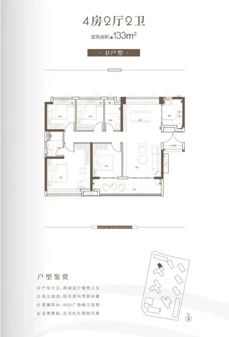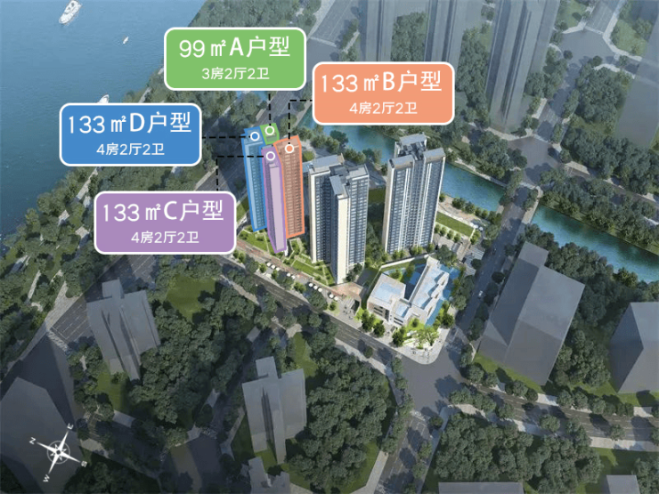 其中,99平方米户型是整栋楼唯一的小面积单位,朝北望江设计,主卧、客房和客厅都能欣赏到江景,户型实用且合理。如果对朝向不是太在意,这个低门槛户型是一个不错的选择。