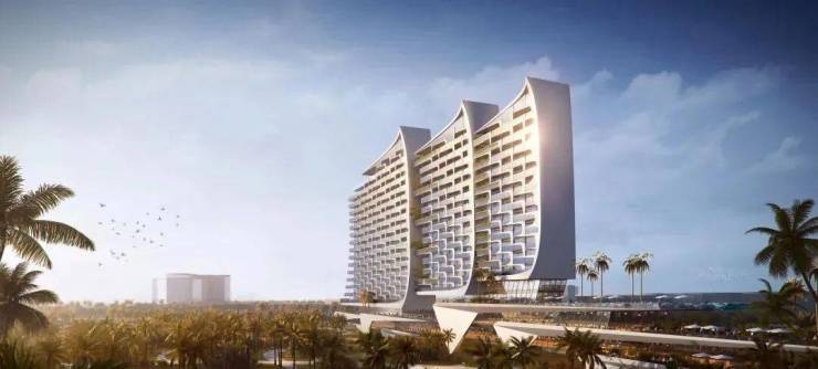 欲升级湾区度假品质,揽滨海风情,沿 岸规划五星级酒店。以 “千帆竞渡” 为念,建筑如三帆、裙房若海浪,动感尽显滨海韵。建成后,凭独特立面成湾区地标,靓化海岸 。