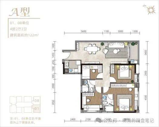 【A型:建面约122㎡4房2厅2卫】