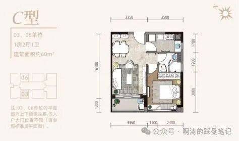【C型:建面约61㎡1房2厅1卫】