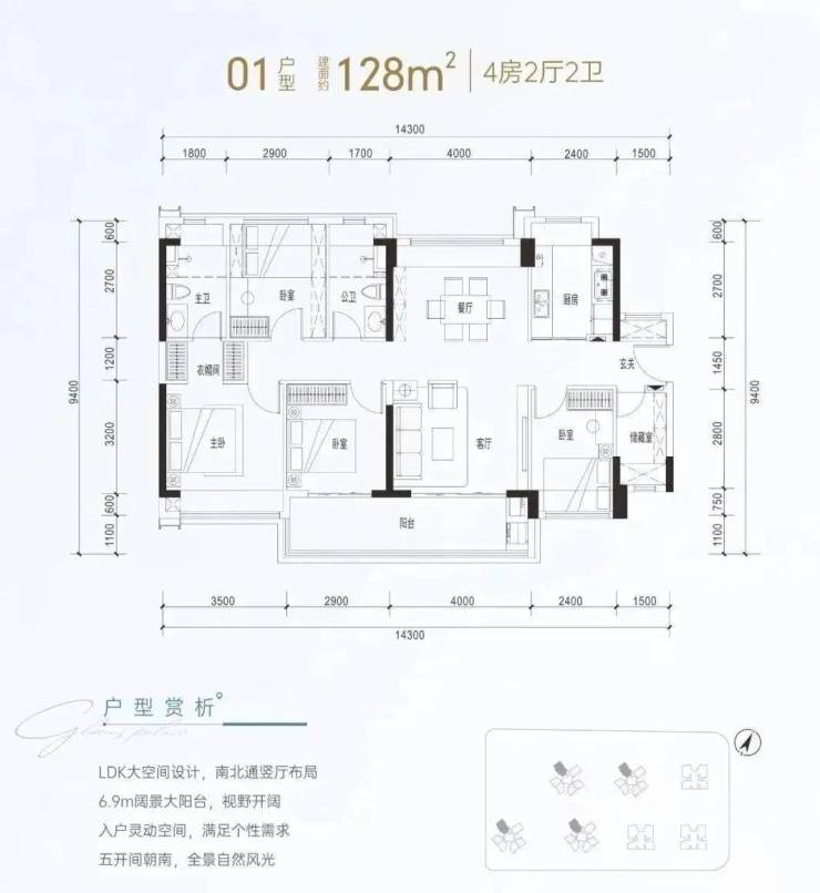 推出建面约84㎡三房两厅两卫,约98㎡三房两厅两卫,约114㎡四房两厅两卫,约128㎡四房两厅两卫,共计4个面积段产品。
