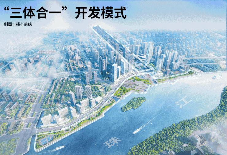 广州滨江天地以约125万㎡连片大城,创新性提出广州首个“三体合一”概念: