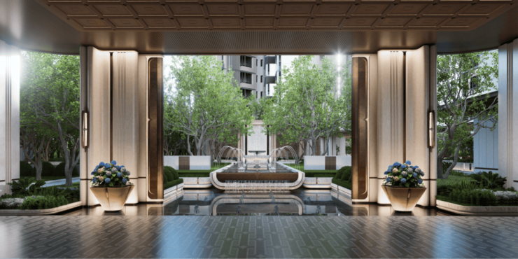 尚滨道由大师执笔打造天际地标,搭配现代璀璨美学外立面,形成白鹅潭滨江独特视觉符号;内在从美学艺术理念上去打造生态、园林、礼遇到圈层层层递进——如以慢行步道串联“揽园”共享花园、18万㎡滨江公园与广钢中央公园,构建“一步公园两步江”的生态闭环,让自然融入日常;园林以“以百年敬百年”为核,打造“船奇艺园”20幕场景,精心编排了一场“岭南文化对话海派风格”的园林盛宴,归家动线同步嵌入立体景观;更以8重酒店式归家礼序为标准,甄选博物馆级石材匠造落客区与多重大堂,并配建约4000㎡酒店星级会所,从入园到圈层社交,全方位彰显塔尖尊崇。