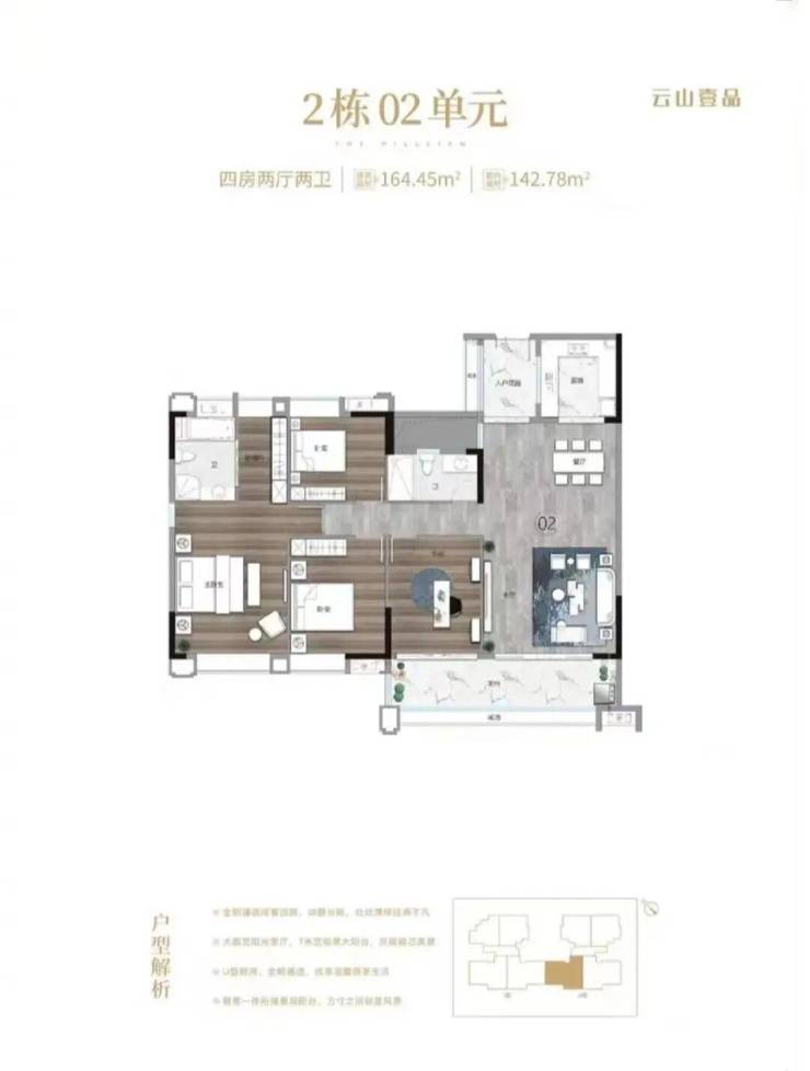 2. 164㎡ 四房二卫户型