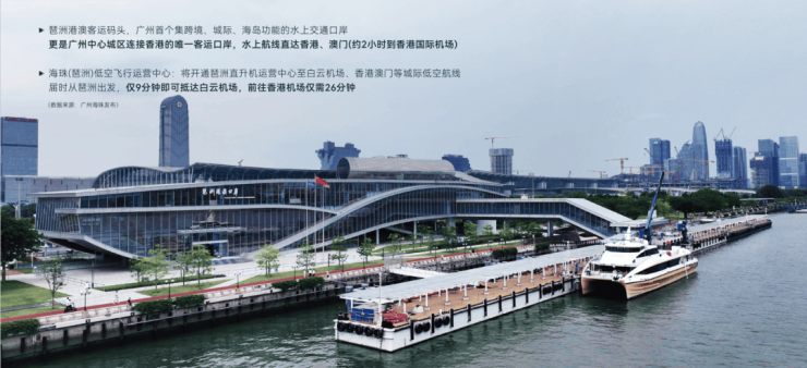 •海珠(琶洲)低空飞行运营中心,约9分钟可达白云机场,约26分钟达香港机场。