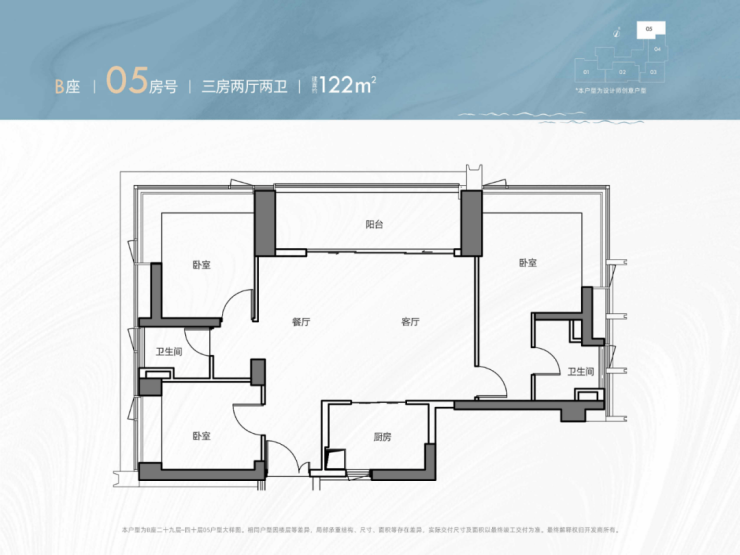 122㎡三房两厅两卫 ;