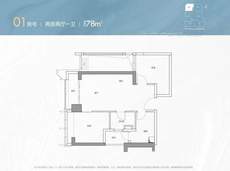 建面约78m²2房1卫;