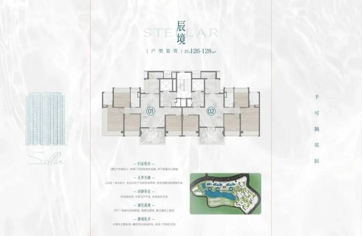 首推160套房源,1、2栋17层板楼约125-127㎡户型(2T2),还有10栋23层塔楼约73-88-110㎡户型(2T5)
