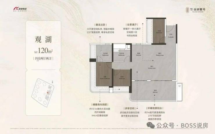 约98-148㎡全南向湖居四房,对标当代华宅范本,创变居住空间的新想象;全南向新规的突破、环拥天地的居住空间、精工雕琢细节之美,打造湖居理想之家,为万博CBD钜献湖居壹号作品。