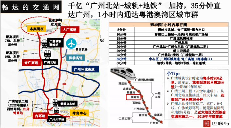 小区门口还有多条公交线路接驳花都市区,附近广清高速海布入口连接广州市区,开车半小时即可到白云。御华园住户还可乘专用穿梭巴士,到达地铁9号线马鞍山公园站,即可便捷搭乘地铁,往返广州市中心,实现双城半小时生活圈。